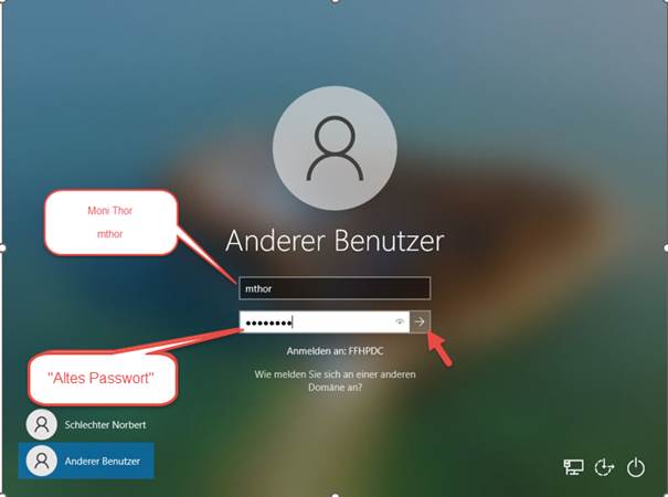 Es muss zwingend das „Alte Passwort“ geändert werden!!